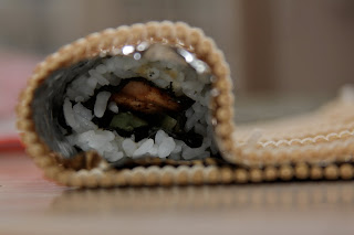 We haven't figured out where to get or how to make some of the special sauces that restaurants use. But a good sweet sauce is mirin. It's mainly used to marinate or in tempura. But we have found a little drizzled on top is yummy. Place some wasabi and ginger on the plate. Pour a little soy sauce, and enjoy.