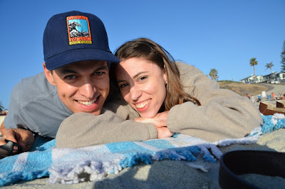 We started Sunday bright and early at the beach. For the longest time Sergio has wanted to surf. I promised him he could get a surf board if we moved to San Diego. As an early Father's Day gift Hannah and I gave him a board. Well it went more like this...Sergio calls to tell me he's stopping to buy something on his way home. Not paying attention I say okay. Less than an hour later he walks in with a surfboard. Oops, should have paid better attention. I tell him, "We were going to surprise you for Father's Day with a surf board."
