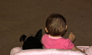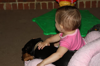 A cute moment of the day I do not want to forget: Maverick was outside waiting to come in. Hannah walked over to the backdoor and reached up for the knob to let him in. As helpful as she was being, fortunately she is not tall enough to actually open the door yet. Not ready to baby proof doors, and worry about an escaping toddler. And while I'm sharing about Hannah and Maverick here are some cute pictures I keep meaning to post.