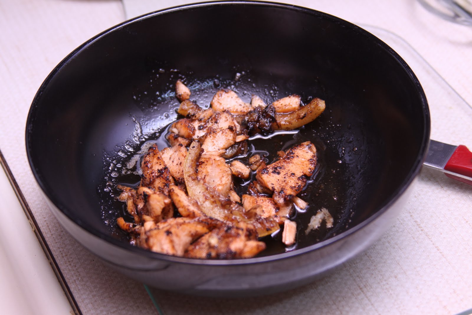 Sergio likes the raw fish, I like it cooked. And Hannah can only eat cooked because of her age. So first I prepared the seared salmon. Place butter and the salmon in the skillet. Squeeze some lemon over the salmon and sprinkle some pepper. On Med-High heat cook the salmon for about 2-3 minutes on one side, flip over and cook another 2-3 minutes on the other side. It cooks fast so don't walk away. The result