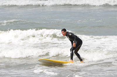 I don't know anything about surfing, but I know the water can be dangerous so I made Sergio take a lesson. It was my one condition that was not negotiable. So Sunday morning Sergio had his lesson while Hannah and I played in the sand.